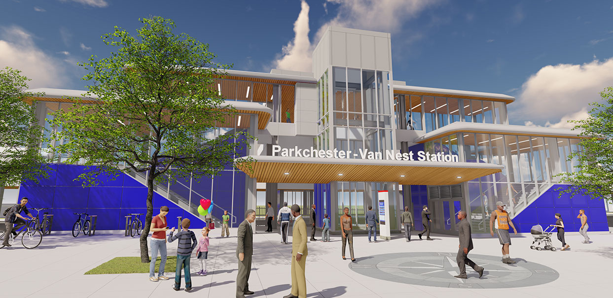 SSA is the lead architect as part of the design-build team for the extension of Metro-North New Haven Line service through the Bronx and into NY Penn Station. Penn Station Access will bolster equity, regional connectivity, and reliability by delivering a new transit option. The project includes 6.5 miles of new rail line, supporting infrastructure and four new commuter rail stations: Hunts Point Station, Parkchester/Van Nest Station, Morris Park Station, and Co-op City Station. SSA worked with the design build team during the pursuit stage to refine the team’s proposed design approach and, since being awarded the project, has continued to refine the design and execute construction of the project. By implementing a collaborative approach to meet Metro-North’s requirements, SSA has focused on a streamlined solutions- and success-driven delivery process to effectively and economically deliver the project.
